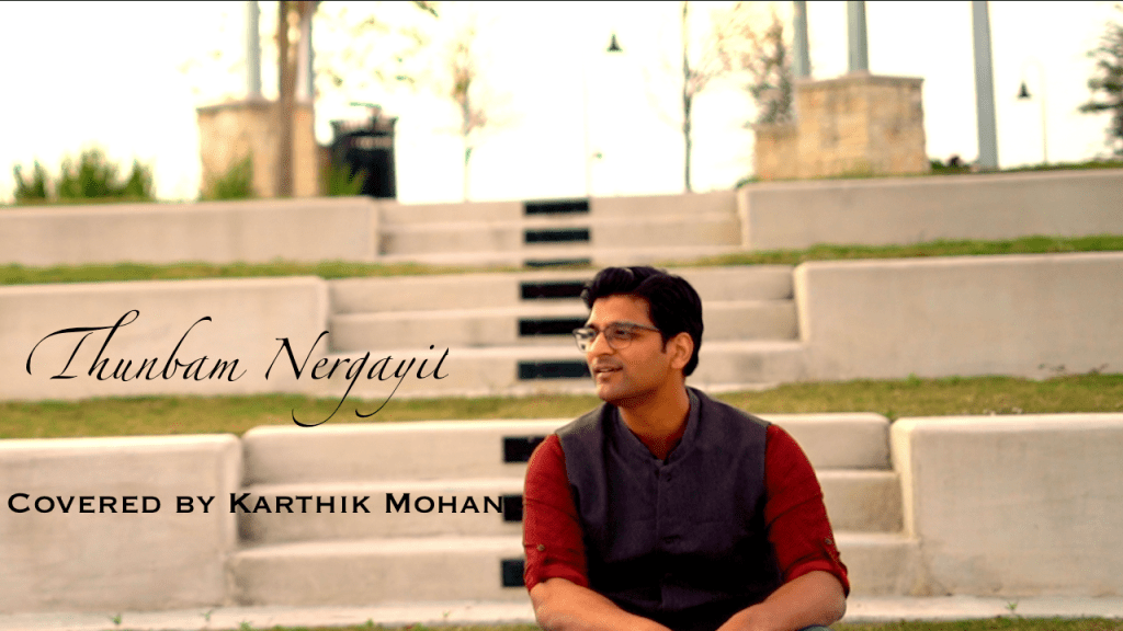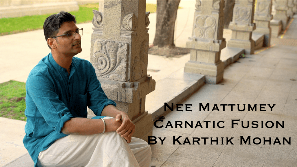 Hazaron Khwaishein Aisi is a ghazal by Mirza Ghalib. The ghazal was beautifully adapted and modified by Shantanu Moitra for the movie Hazaaron Khwaishein Aisi. Enjoy Karthik’s rendition of this amazing song. Nee Mattumey is a Tamil Song based in Kaapi Raagam. The lyrics penned by Perumal Murugan are about the obsession called love. You are the only one in my heart, no matter how hard I try, I cannot forget you or erase your love from my heart. Click the image to enjoy Karthik’s renditionMore Saiyaan is a classical fusion composed in Desh Raag by Nusrat Fateh Ali Khan. Karthik has taken this wonderful song and fused it with electronic beats to give this song a completely different feel from the original.Mahaganapathim is a Classic Carnatic song composed in Natal raagam. Bantu Reethi Kolu is a song in Hamsanaadam Raagam. It is a song that transcends boundaries of time. The song has been fused with western elements to keep it contemporary but a sincere effort has been made to keep it true to the soul of the raga.Thunbam nergayil is a classical song composed in Desh Raagam. Karthik has played the lead guitar in this song along with giving voice to the rendition.